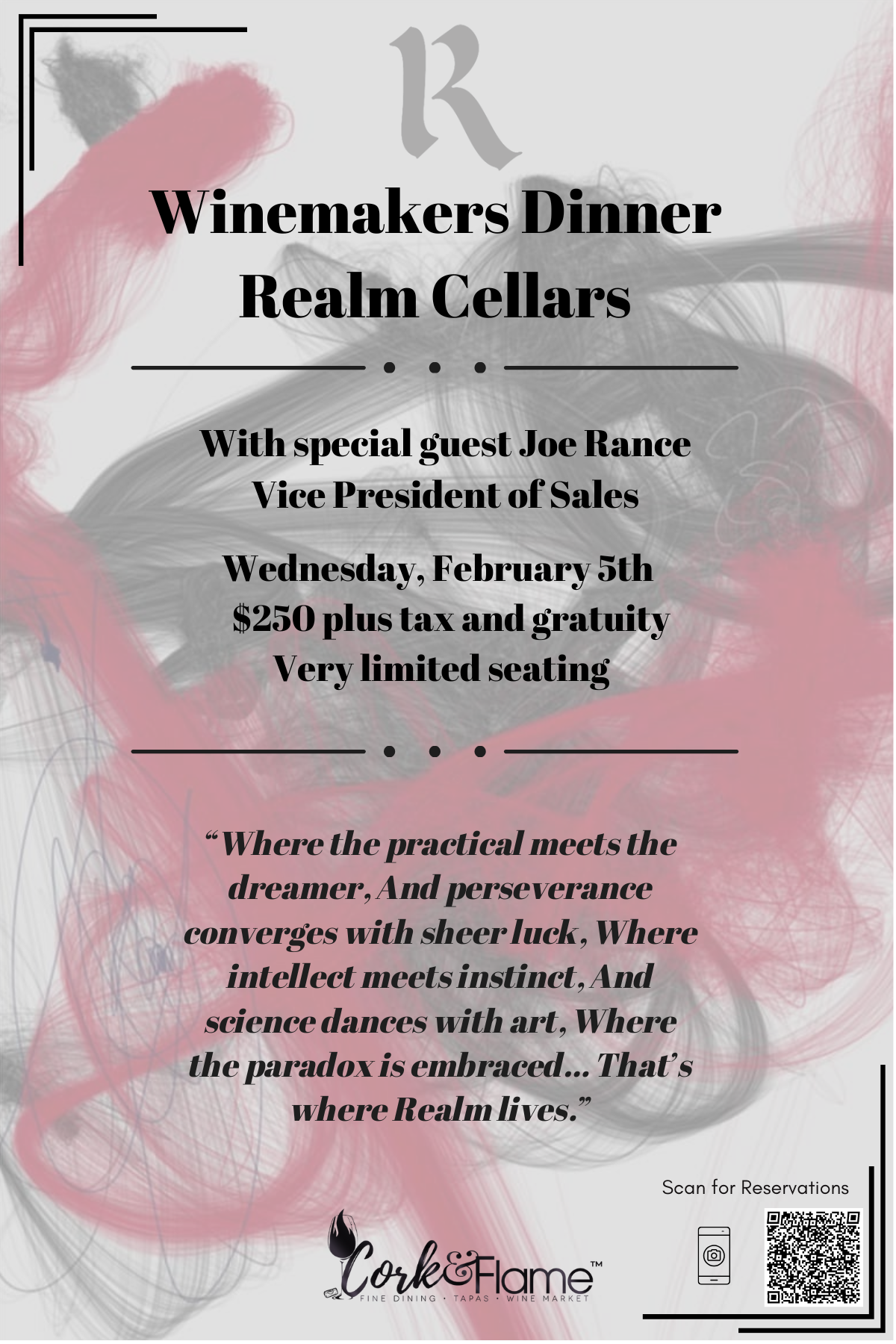 Experience the artistry and passion of Realm Cellars at our upcoming winemaker's dinner, where each wine tells a story of vision, perseverance, and the pursuit of perfection.